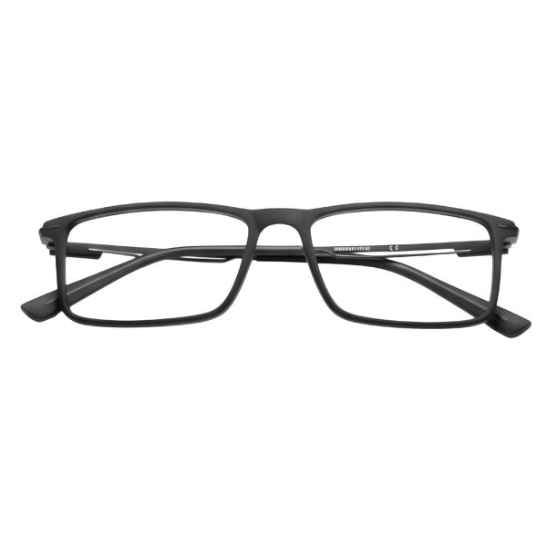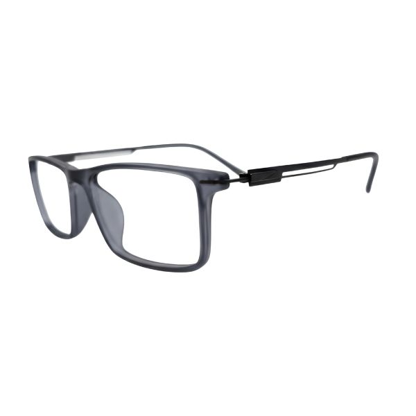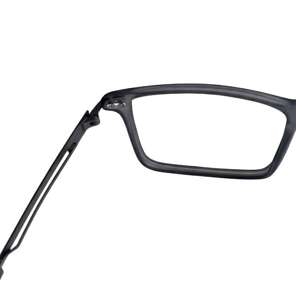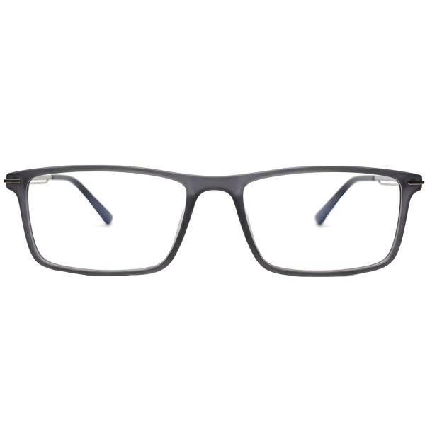 Stylish grey full-rim rectangle frame crafted with TR90 and titanium for ultra-light 13.65 g comfort. Ideal for daily wear and compatible with blue block, progressive, tinted grey and photochromic grey lenses.