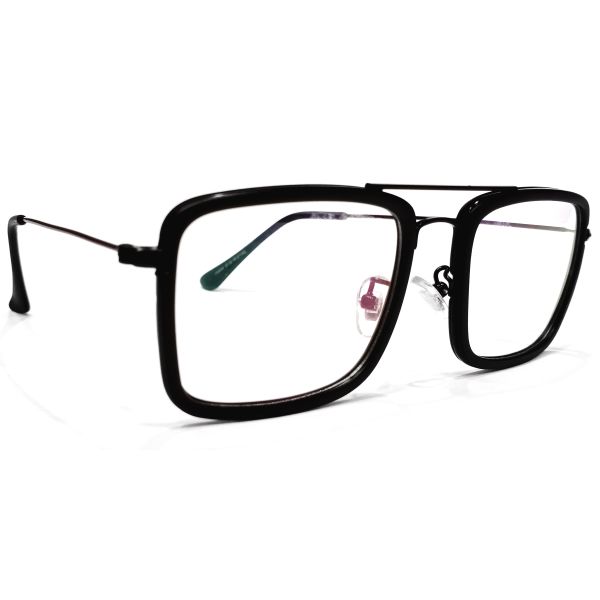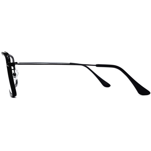 Minimalist black full-rim eyewear with slim metallic wire construction, featuring a near-square lens shape and a stylish matte outer sheet – perfect for a lightweight, all-day modern look.