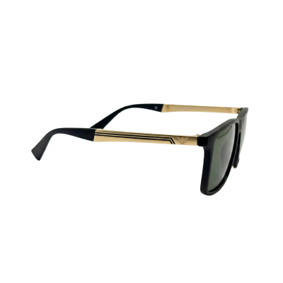 Golden rim square sunglasses designed with a bold black square front and refined gold-finish temples. A perfect blend of classic structure and premium styling, ideal for daily wear and modern fashion looks.