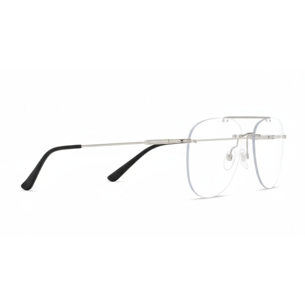 The rimless titanium front ensures durability without bulk, while stainless steel temples provide flexibility and long-term comfort. Weighing just around 14 grams, this air-light frame is ideal for extended daily wear and supports all vision types, including single vision, progressive, and fashion lenses.