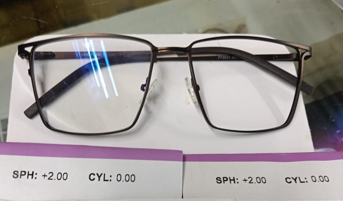 Uncut Single Vision CR39 Blue Block Photo Grey lenses prepared to exact prescription specifications, featuring adaptive tint technology and digital screen protection, ready to be precisely edged and mounted into the selected ultra-light titanium full rim metal eyeglasses.