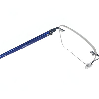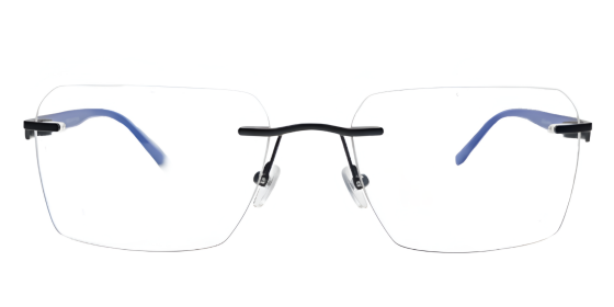 Premium rimless geometric square eyewear combining titanium front and carbon fiber temples for ultra-light durability and flexible comfort. Designed in a large size to support bifocal and progressive lenses comfortably. Supplied with polycarbonate unbreakable lenses.