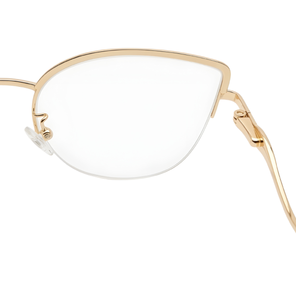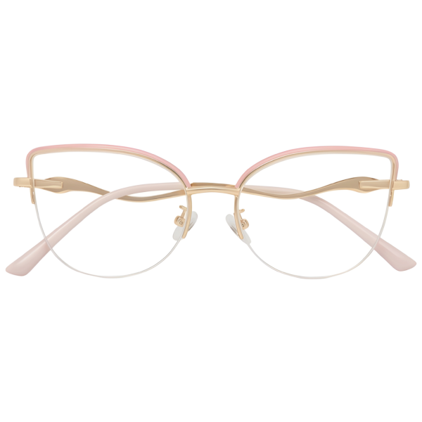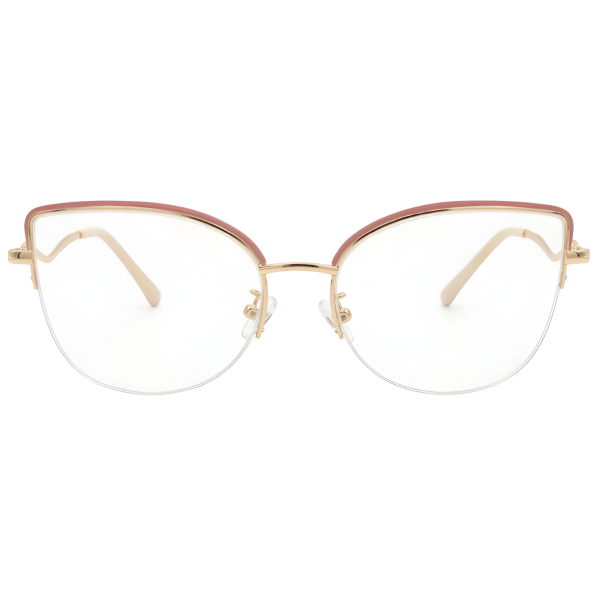 Elegant rose gold semi-rimless cat-eye eyeglasses designed for modern women. The lightweight metal frame with soft pink accents offers a stylish, feminine look while ensuring comfortable everyday wear.