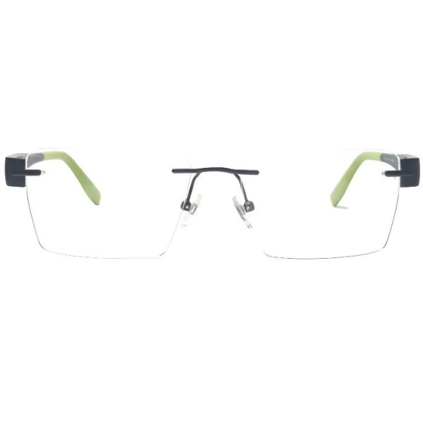 NationsOptics Ultra-Fine Metallic Green Rimless Rectangular Frames